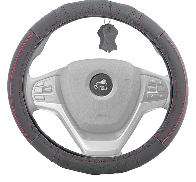 - Cubre volante de 37-38 de fácil colocación Color negro, hilo rojo 100% Piel natural